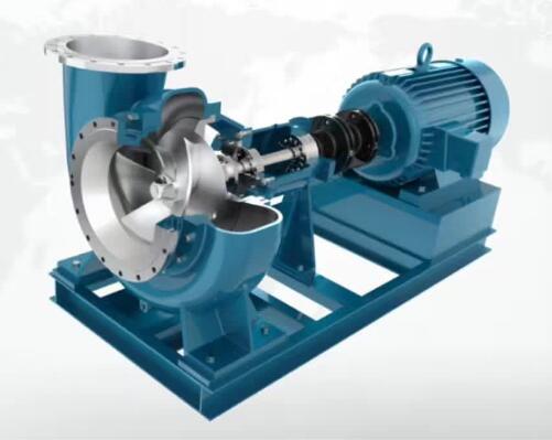 当原动机带动叶轮旋转后,对液体的作用既有离心力又有轴向推力,是离心泵和轴流泵的综合,液体斜向流出叶轮。因此它是介于离心泵和轴流泵之间的一种泵。混流泵的比转速高于离心泵,低于轴流泵,一般在300-500之间。它的扬程比轴流泵高,但流量比轴流泵小,比离心泵大。